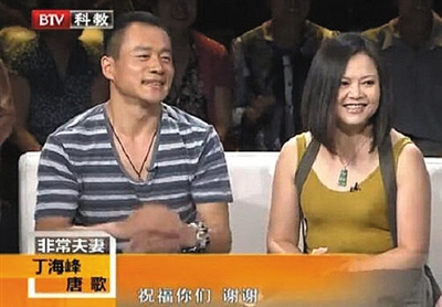 丁海峰的妻子唐歌比丁海峰大2岁,原来是名幼儿园老师。从两个人谈恋爱开始,他们的感情就不被人看好,不光是双方父母不同意,唐歌单位的同事也曾放话:“不信咱就走着瞧,他们俩肯定长不了。”以至于后来,好久不见面的朋友,见面打招呼第一句话都是:“丁海峰,你还没离婚呢?”