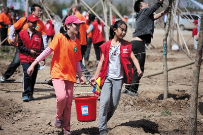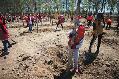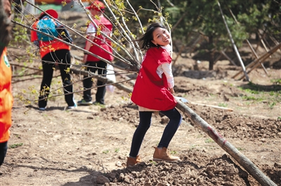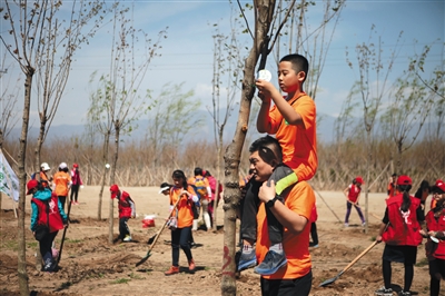 上百小记者延庆种树 筑“读者林”为春添绿