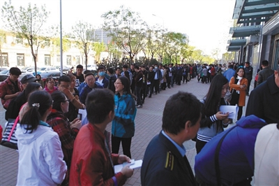 4月12日,高米店家园公租房项目登记现场,市民排队在等待登记。市住建委供图