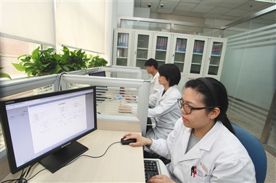 昨日下午,朝阳医院一名药师正在审核处方。朝阳医院供图