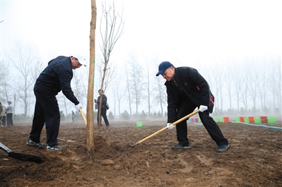 没有启动仪式,没有迎来送往,部长们一下车便直奔植树点忙活起来。