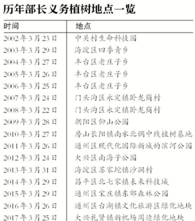 加上昨日新植的“部长林”,目前,北京已有13处“部长林”。记者梳理发现,这些植树点多与北京的城市发展热点及重点工程相关。