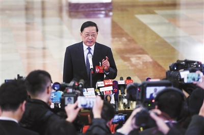 昨日,十二届全国人大五次会议闭幕会前“部长通道”上,住建部部长陈政高接受记者采访。