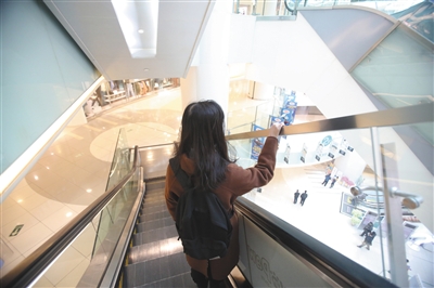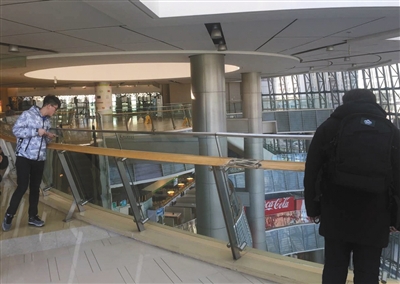 王府井新东安商场电扶梯护栏,高度在1.5米左右。 新京报记者 王飞 摄
