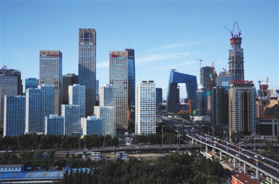 2016年9月5日,北京朝阳区,蓝天下的国贸CBD商务区宏伟壮观。资料图片/视觉中国