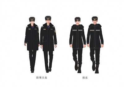 昨日的会议现场,两名工作人员身着全套制服进行了展示。服装的颜色为藏青色及天空蓝色,搭配金色标志。据王早生介绍,服装功能主要考虑适应城市管理执法工作场所多在户外、街头的实际,便于执勤活动。