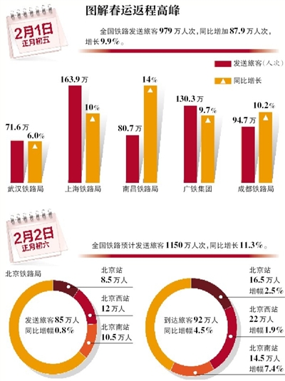 两天近百万人坐火车回京