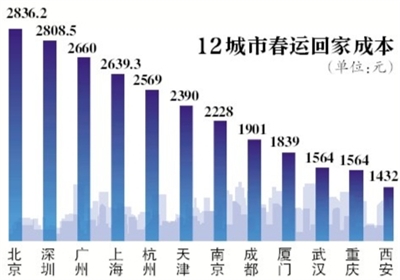 今年春运12城市中,北京旅客回家成本最高;北京到伊春航线最难买,平均提前55天购票