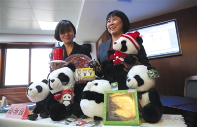 昨日,北京动物园,工作人员展示市属公园特色新年礼物。