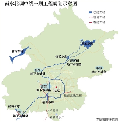 虽然南水已占北京城区供水7成,但孙国升坦言,单一输水来源仍存在风险,未来北京将有东西南北四条供水通道。其中,南线已通水,东线正在规划,将由江苏通过天津再到北京。