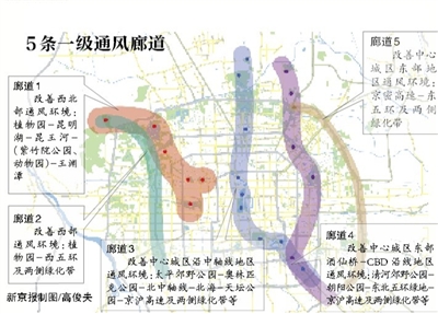 据悉,北京将构建5条宽度500米以上的一级通风廊道,多条宽度80米以上的二级通风廊道,未来形成通风廊道网络系统。