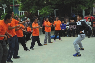 5月15日,任高旗为他们报名参加了良乡镇助残日表演。参与训练的王帅等人听说要在村里表演,来了精神,跟着任高旗的动作,有节奏地弓着身子,迅速出拳,再迅速缩回。