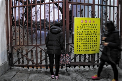 昨日,中华民族园南园未开放,门上贴着南园关闭的告示。新京报记者 王嘉宁 摄