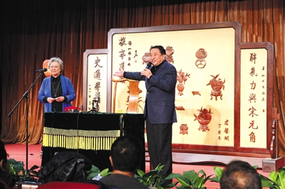连丽如与姜昆同台。昨日,宣南书馆第500场演出,也是现址的收官之作。新京报记者 李飞 摄