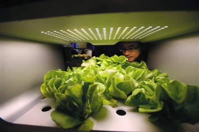 据项目负责人介绍,在这种种植机里生长的蔬菜比在自然土壤中生长时间缩短一倍,比如生菜,从种到收半个月就可以完成。
