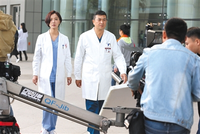 饰演主任医师何建一的张嘉译与饰演高学历海归医生江晓琪的王珞丹在拍摄现场。