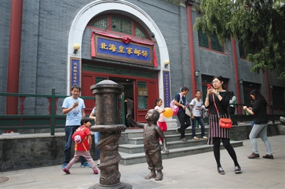 10月2日,北海公园。过去的会所“上林苑”,如今改成了“北海皇家邮驿”,供给游客购买邮寄明信片等。 新京报记者 尹亚飞 摄