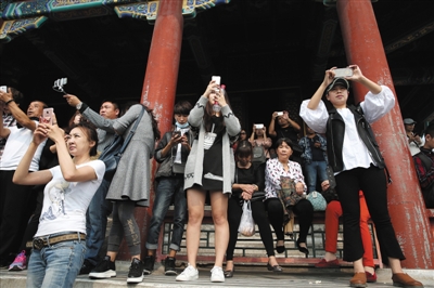 昨日,记者在景山公园万春亭看到,游客大多有序进出,未出现拥堵。上午10点,景山公园工作人员介绍,目前,上下两层平台区域内游客不到百人,大部分为北京市民。