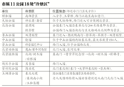 昨日,市公园管理中心对外发布市属公园18处冷门景区,方便游客游览。其中,颐和园的南部景区,包括八方亭、玉带桥、西门以南至南如意门,正举行首届颐和园文化创意产品展,主会场设在八方亭广场,分会场设在松堂广场。
