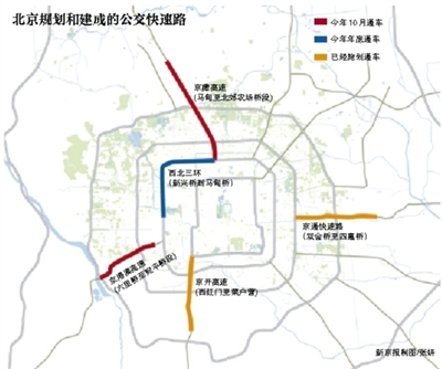 加上此前京通快速路和京开高速已施划的公交专用道,北京东西南北四个方向的城市快速联络线都将有公交快速路。此外,西北三环新兴桥到马甸桥等50公里公交专用道年内也将启用。
