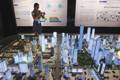 昨日,朝阳区规划艺术馆,一名参观者正在观看北京CBD商务区的沙盘。 新京报记者 李飞 摄