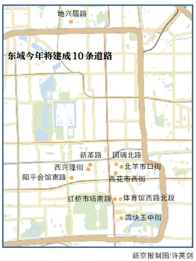 新京报讯 (记者信娜)红桥市场及天坛公园周边交通拥堵常常困扰市民,这种状况可能随着周边道路建设完工有所改善。7月14日,记者从东城区城管委获悉,今年,东城区将开工建设22条支路,共约11公里。其中,今年将建设完成10条道路,如西花市西街、体育馆西路北段等。