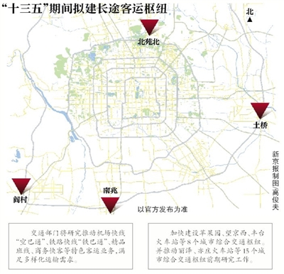 根据规划,未来五年内,将建设阎村、南兆、土桥、北苑北4个长途客运枢纽,均位于五环外。
