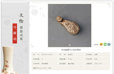 为国内首个可移动文物普查成果线上平台,展示商到民国1万余件(套)文物