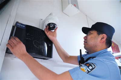 朝阳分局民警检查高考考场摄像头。通讯员 甄瑱 摄