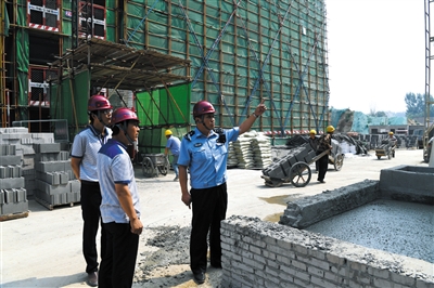 顺义警方对考场周边工地开展高考安保宣传工作。通讯员 赵亭超 摄