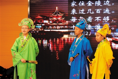 十八中西马校区学生扮演江南四大才子,展示学校开展的综合实践课程成果。资料图片