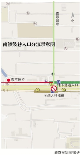 记者了解到,以往几乎全部客流都会从南锣鼓巷南口过马路进入景区,过马路的时间漫长,使过往车辆遭受严重影响。司建说,现在交管部门已经把正对着南锣鼓巷南口的人行横道封闭。也就是说,以前从路南可以直接过人行横道从南口进南锣鼓巷,现在不能了。