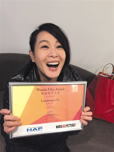 拿奖后的刘若英很兴奋。