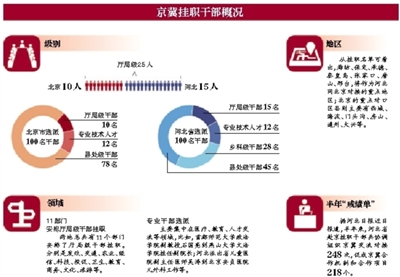 据河北日报近日报道,半年来,河北省赴京挂职干部共协调组织京冀交流对接248次,促成京冀合作机制和合作项目218个。