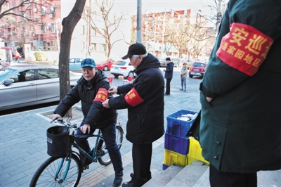 在东南三环边的潘家园小区,北三环的三源里、安贞西里小区,遛弯的大爷、挎着菜篮子的大妈,都在为值班准备着。有些大妈心急,甚至先于通知,把电话打到了安贞西里小区的居委会:“两会马上开了,咱今年的值班啥时候开始?”