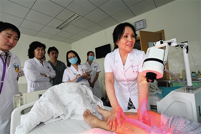 为实施首都核心区医疗资源有序疏解,北京市卫生计生委在10个远郊区打造11个郊区区域医疗中心;并确定11家三甲医院对口支援。图为对口支援医院的专家和当地医生一起查房。