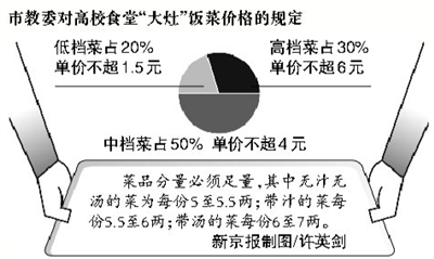 据了解,北京市教委已对高校食堂饭菜价格设置了上限。