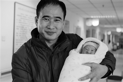 23日,杨瑞辉在友谊医院抱着自己的“小龙女”。