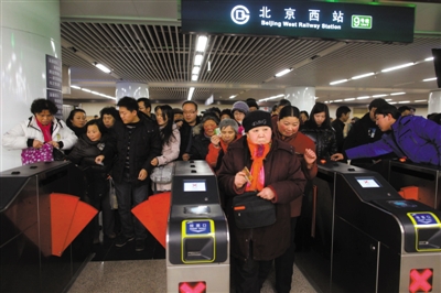 昨日,地铁9号线北京西站,首批乘客刷卡进站。