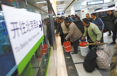 昨日,9号线北京西站西侧进站口并未启用,进站全在东侧。如果遇到春运返程大客流,仅凭东侧进站口是否够用?赫楠表示,已有应对措施,西站一共64台闸机,东西侧进站各15台,南北出站闸机共34台,如果东侧15台进站闸机满足不了乘客进站需求,将会把南北出站的部分闸机调整为双向闸机,将出站通道改为进站通道。