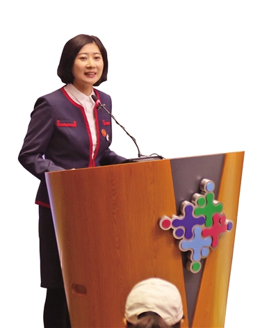 2018年11月,荆惠梓作为北京冬奥宣讲团的宣讲员在作冬奥宣讲。北京冬奥组委新闻宣传部供图