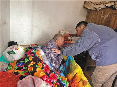 2月10日,唐培看望90岁的低保户唐增成。新京报记者 肖薇薇 摄