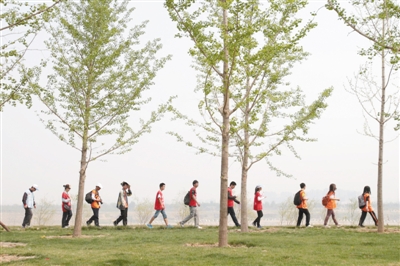 昨日,北京园博园,一群市民正在长走。当天,近万人参加长走的同时,提前饱览了园博园美景。新京报记者 王嘉宁 摄