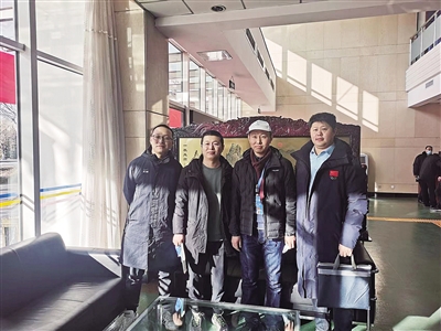 1月22日,刘冠林(左一)和冬残奥会开闭幕式工作组部分工作人员合影。受访者供图