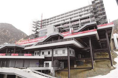 4月18日,延庆小海陀山上,一栋栋黄墙灰瓦的小楼坐落在山间,这里是延庆冬奥村,冬奥村西侧紧邻国家雪车雪橇中心“雪游龙”,国家高山滑雪中心“雪飞燕”坐落于园区北部。