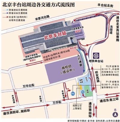 今日,北京丰台站开通运营。记者从北京市交通委获悉,目前,北京丰台站周边公交地铁、出租车、小汽车、步行等多种交通方式的接驳已准备就绪。根据规划,未来北京丰台站南、北侧将建设城市综合交通枢纽。