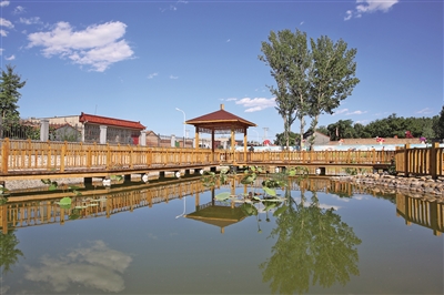 通州区老槐庄村,大钱坑食用菌主题公园人工湖景色优美。受访者供图