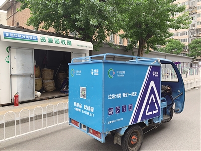 在北京东花市街道社区外,写着“绿猫资源回收屋”字样的绿白相间铁皮小屋相当醒目,时常有社区居民来这里投放可回收垃圾。在社区内则设有生活垃圾分类驿站。这是北京天龙天天洁再生资源回收利用有限公司(简称“天天洁”)推出的再生资源回收与厨余垃圾分离的“两网融合”新模式。而在北京许多社区都有不同模式的新型垃圾分类设施。