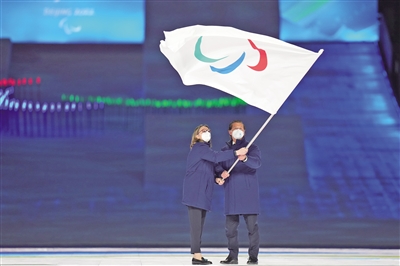 国际残奥委会会旗交接仪式。新华社记者 张可任 摄