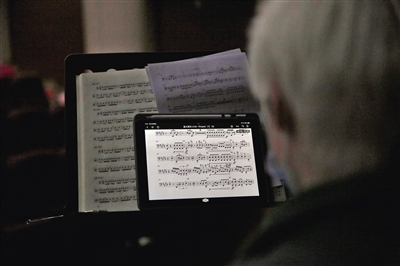 王得江告诉记者,自己在此次演出中使用的是四个一组的定音鼓,“鼓槌一般落在鼓面边缘的位置,因为鼓比较大,打中心的话声音会很闷,而且不容易产生共鸣,也不能完全震动起来。”